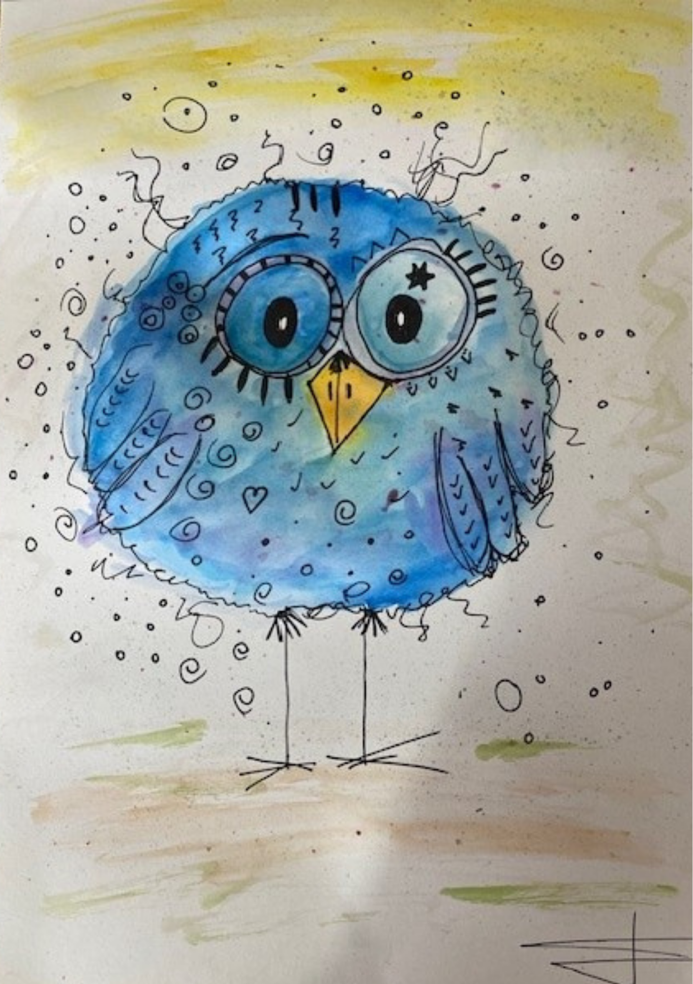 Aquarellfarben, Fineliner und Farbstifte in einfachen Schritten so
