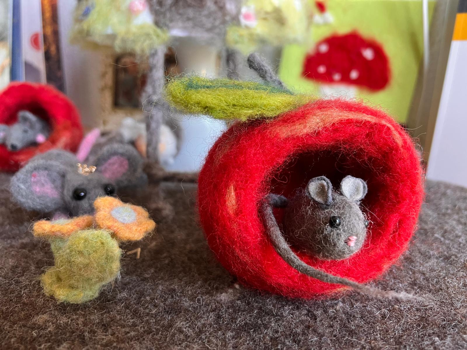 Während Du das Häuschen vorbereitest, werde ich Dir auch noch die Geschichte vom Apfel-Mäuschen erzählen. Nassfilzen macht Spass und ist gar nicht schwierig.