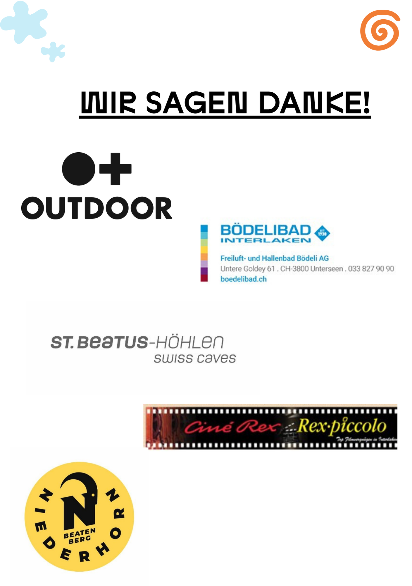 Dank Sponsoring ist es uns jedes Jahr möglich verschiedene Zusatzangebote anzubieten. Wir von der OKJA Region Jungfrau bedanken uns herzlichst für die Unterstützung!